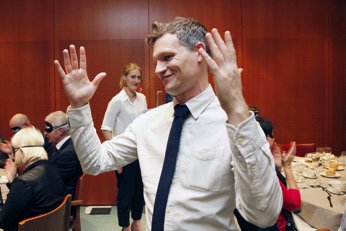 Der ÖVP-Europaabgeordnete Heinz K. Becker hat zu einem "Abendessen im Dunklen" im Europaparlament: "Es ist immer etwas Anderes, ob man theoretisch über fortgeschrittene Sehschwäche oder Blindheit nachdenkt oder die Situation der Betroffenen selbst nachempfindet", sagt Becker. "Das gemeinsame Essen und Trinken, ohne sich auf seine Augen verlassen zu können, gibt einen ersten Eindruck davon, welchen Hindernissen sich unsere blinden Mitbürgerinnen und Mitbürger gegenübersehen. Ich möchte den Blick für die Sehschwäche schärfen."
